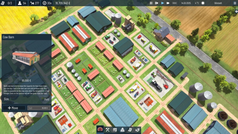 建造储藏设施、车辆停车场和道路。从现实世界的农用车辆和工具中汲取灵感,购买各种设备。