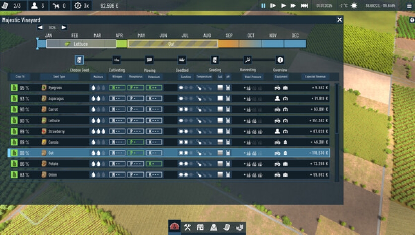 准备好迎接挑战了吗?尝试在不同的大陆种植不同的作物。根据所选地区的不同,天气和土壤质地或 pH 值等土壤条件也会发生变化。