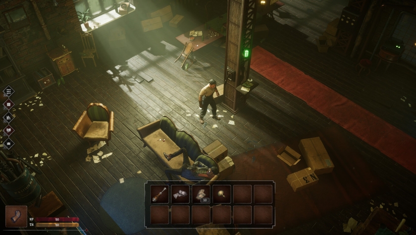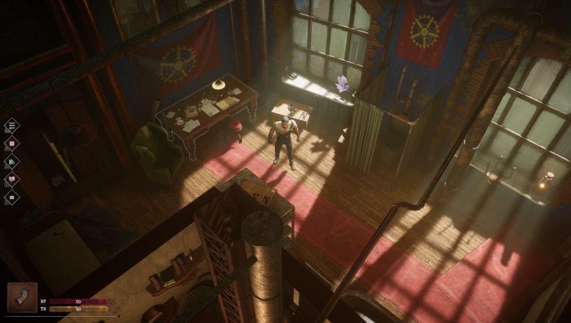 采用等距视角,融合工业废墟与粗粝的“封建朋克”设计。公寓场景狭窄阴暗,烘托资源匮乏的窒息感。