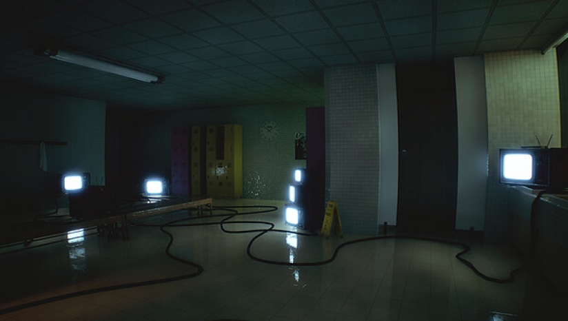 融合空旷走廊、单调灯光与低频噪音,营造熟悉又不安的“后室”式空间,强化心理压迫感。