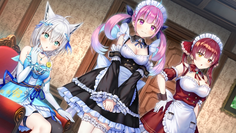 Hololive成员凑阿库娅、宝钟玛琳、白上吹雪全程配音。阿库娅突破直播形象,演绎从青涩女仆到陷入热恋的成长,亲昵台词与暧昧场景服务粉丝;玛琳与吹雪则融入直播梗(如“44.5”“出航”),角色塑造贴近现实性格。