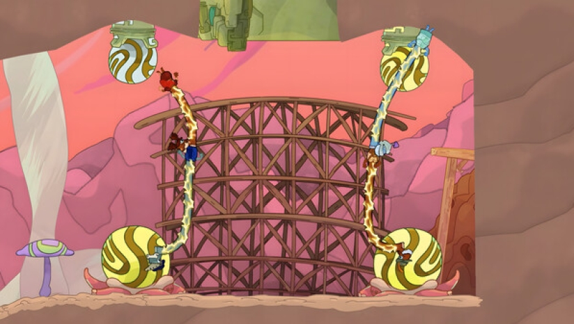合作模式(2–4人)一起伸展、咬合、摆动,穿越野外环境并解谜,寻找激活你流散民族被遗忘的纪念碑的方法。