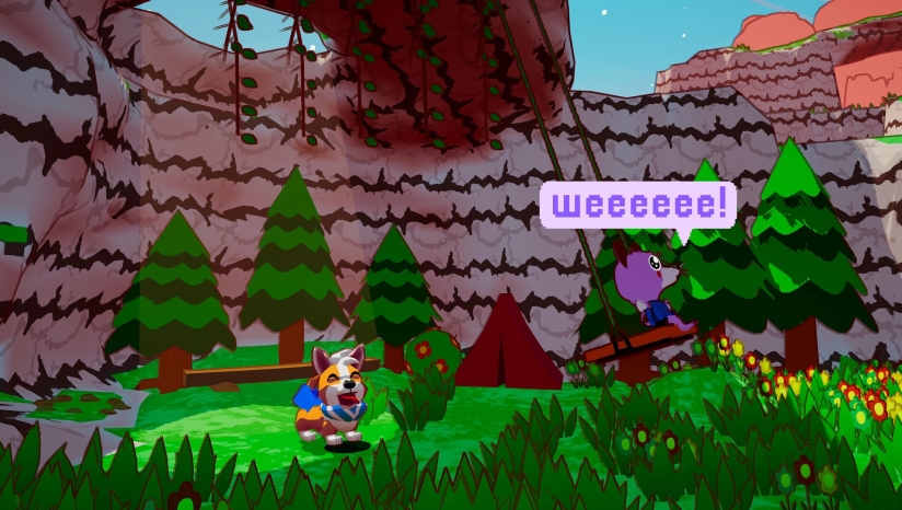 独创的“柯基超能力”系统将收集机制与动作解谜结合,例如利用臀部能量喷射升空或攀爬悬崖,打破腿短限制的趣味设计。