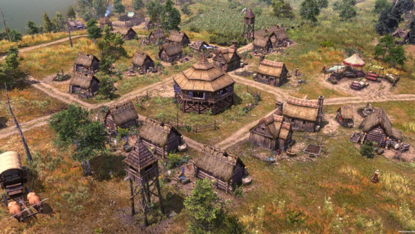 村民实时执行任务(搬运货物、耕作),动物行为拟真(鹿群迁徙、熊袭击农田)。