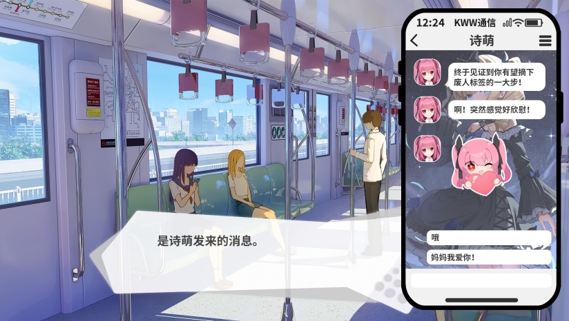 玩家通过“实时对话系统”推进剧情,需在对话中即时回应角色,而非传统选项模式,增强了代入感。同时,游戏引入“手机交互”玩法:通过4个社交群聊(3人却拥有4个群)接收消息、触发分支任务,影响角色关系和结局。剧情包含多角色多结局设计,超百万字剧本赋予分支深度。此外,玩家可自定义男主角姓名(妹妹诗萌会同步继承该姓氏),强化角色归属感。