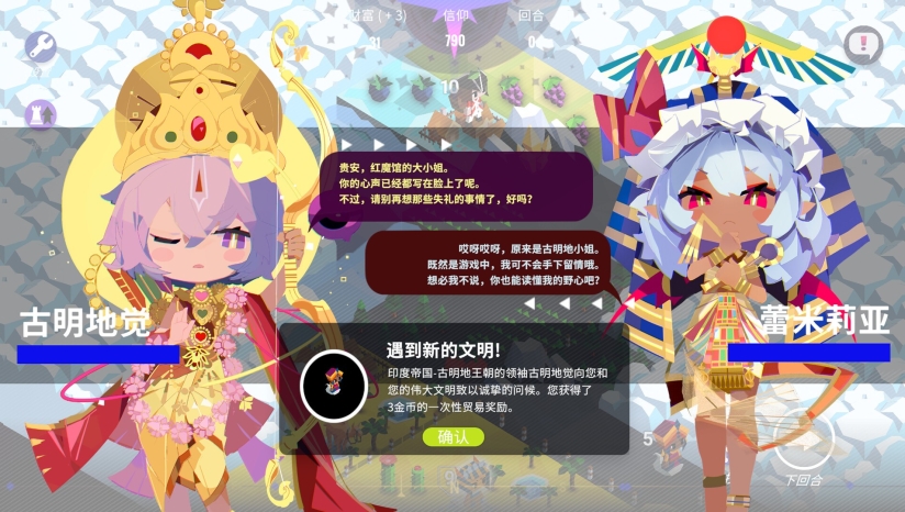 《帝国幻想乡~TOHOTOPIA》以东方Project世界观为基石,构建了一个幻想乡少女化身历史帝王将相的平行时空。玩家将引领四大初始阵营(地灵殿、红魔馆、永远亭、守矢神社)跨越文明界限,在融合历史与幻想的棋盘式地图中角逐霸权。例如,辉夜公主化身拿破仑指挥月面战争,蕾米莉亚则成为战争,蕾米莉亚则成为埃及法老奥西里斯执掌红魔王朝,通过荒诞又深邃的跨界叙事,诠释文明兴衰与角色宿命。