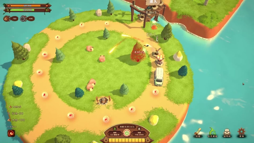 玩家操控可升级的魔法战车穿越动态生成的地形,通过战斗收集资源,解锁火焰喷射器、寒冰装甲等部件,强化战车性能。