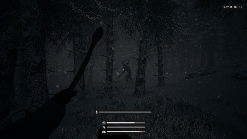 玩家扮演一名在广袤森林中迷路的旅人,同伴通过发射信号弹指引逃生方向。然而,森林中潜伏着北美传说中的人形怪物“温迪戈”(Wendigo),它们对声音极度敏感且畏火。与此同时,极寒环境会持续消耗玩家生命值,唯有靠近热源才能抵御寒冷。双重威胁下,玩家必须在黑暗与严寒中挣扎求生,寻找唯一生机。