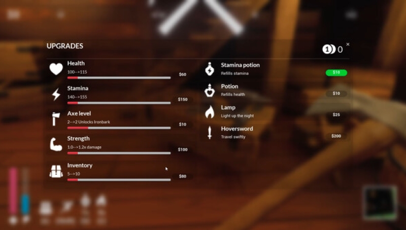 2、资源推进:卖木材换取现金,搜集过去的遗迹,升级工具,攀登更高峰。