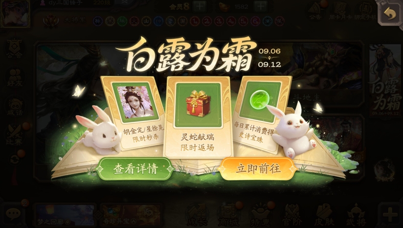 游戏采用古风美术设计,角色立绘融合历史考据与艺术创作,技能特效华丽。动态皮肤系统赋予武将战斗动画(如“蛇年七夕赵云”),搭配山川流水、花瓣飞舞等场景细节,营造沉浸式三国战场。音效方面,由绯雨配音社录制全武将专属语音,技能触发时结合声效与震动反馈,强化视听体验。