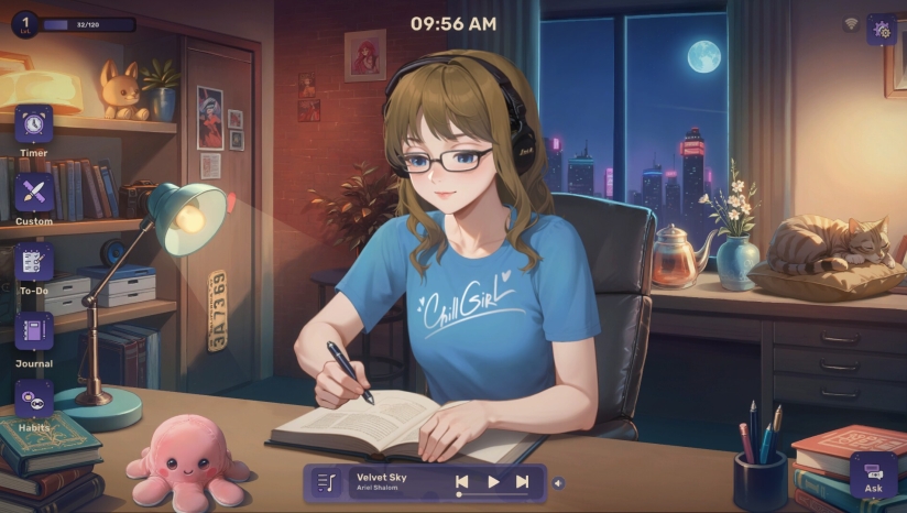 《Lo-Fi Girl:AI Assistant》是一款融合治愈氛围与实用功能的休闲模拟游戏。基于热门Lo-Fi文化打造,玩家可创建专属虚拟形象,通过400+项定制选项设计发型、服饰甚至宠物伙伴。游戏内置丰富低保真音乐播放列表,可搭配雨声、柴火等环境音,并调节昼夜场景营造个性化氛围。作为“gamified focus tool”,它提供计时器、待办清单等productivity工具,AI助手会智能适配场景推荐音乐。玩家既能装饰温馨房间、收集萌宠,也能单纯沉浸在温暖色调与慵懒节奏中放松。