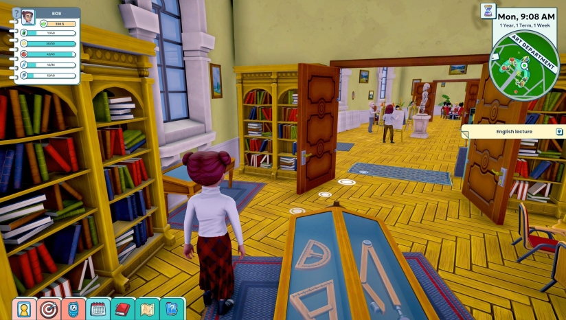 兼职赚取学费、装饰宿舍,并通过时间管理平衡学习、社交与工作。游戏以学年为单位推进,最终目标是通过积累学术成就、人际关系与声誉,成为校园明星。