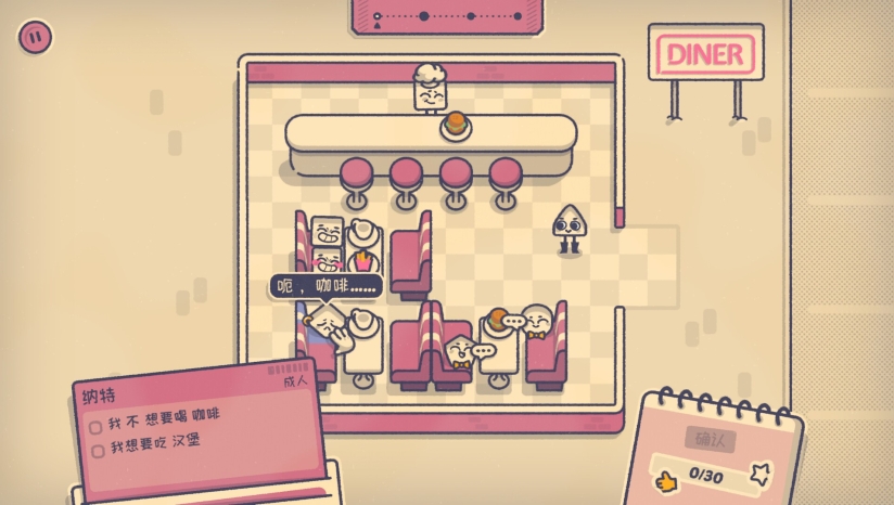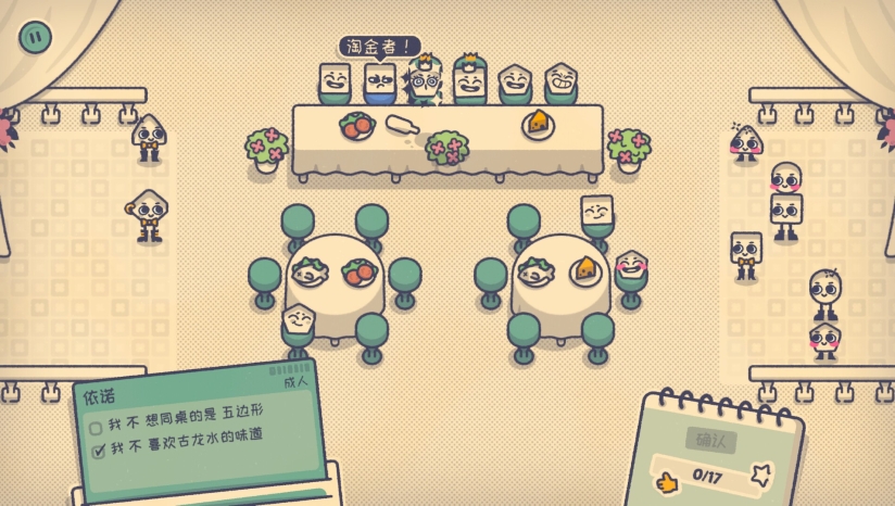 关卡逐步引入旋转餐桌、分区座位或“爆米花污染”等机制。无时间限制与惩罚,支持自由拖拽调整,通过角色表情、服饰等线索推理最优解。