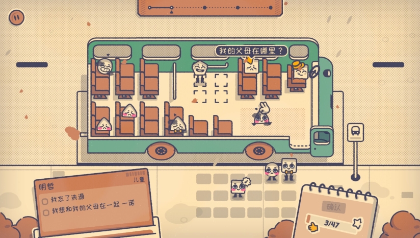 《这个座位有人坐吗?》是由Poti Poti Studio开发的逻辑益智游戏,采用手绘治愈风格。玩家将在公交车、电影院、婚宴等日常场景中,根据角色独特偏好协调座位:气味敏感者需远离香水客,困倦乘客要避开吵闹邻座,还有人坚持靠窗或家人邻座。通过观察环境与角色需求化解冲突,无需应对计时器压力。游戏以主角纳特的环球之旅串联关卡,他因发现银幕相似者开启旅程,在协调座位中体验人情冷暖。随着关卡推进,场景引入旋转餐桌等新机制,难度循序渐进,每个角色通过夸张表情与服饰传递性格,让玩家在轻松解谜中感受生活智慧与社交共鸣。