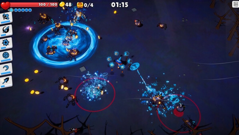 3、地牢中危机四伏,敌人如潮水般来袭。你的目标?活下去。运用你自制的法杖,在每一次遭遇战中击退怪物潮,直到传送门启动,带你前往更深的黑暗。每一次逃出生天,都是战术与创造力的胜利!