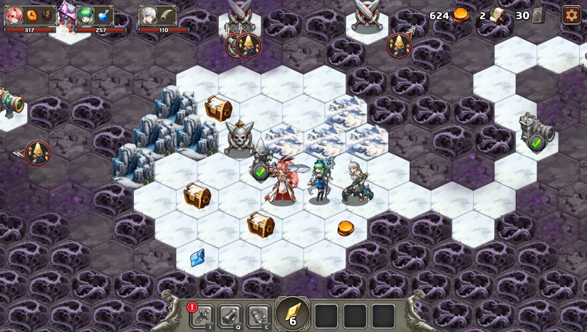 Lost Ground 的世界并不是一条单行道。探索可以向前、向后或绕道进行。自由探索由六边形瓷砖组成的世界,揭开诅咒之地的秘密。