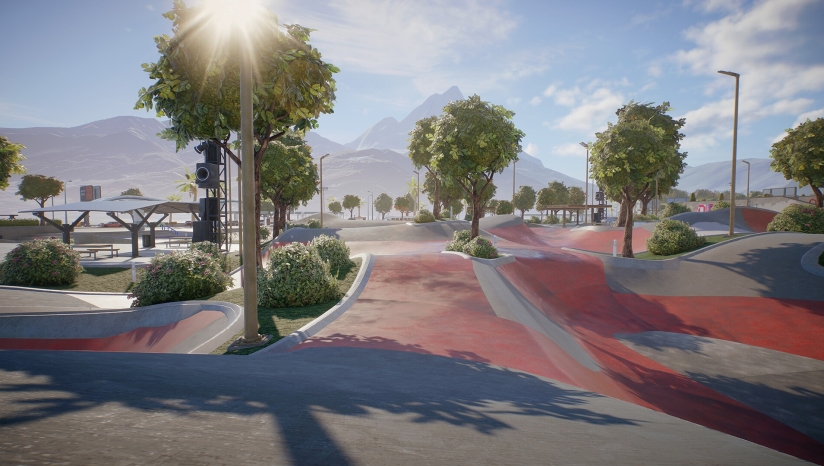 游戏采用写实级场景建模,细致还原街头涂鸦、破损栏杆与异形地形细节,动态光影增强环境沉浸感。物理引擎渲染逼真的滑板运动轨迹,落地碰撞与特技回放镜头自动切换至最佳视角。城市景观融合复古与奇幻风格,如绿树成荫的公园、霓虹闪烁的市中心,辅以动态配乐系统随玩家动作节奏变化,强化速度与技巧的视听反馈。