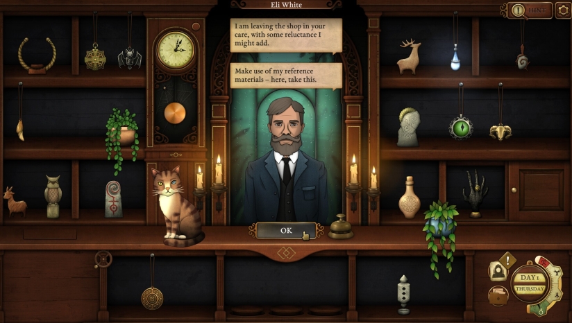 玩家需通过多感官交互鉴定古董:包括放大镜观察、称重、触摸、嗅闻甚至倾听物品声音,以此判断其属性与潜在危险。日常经营中需服务性格古怪的镇民,根据顾客需求匹配古董——选择可能助人脱困或引发诅咒,进而触发连锁剧情。游戏支持地图探索,玩家可离开店铺,通过手绘地图深入小镇搜寻新古物与事件线索。此外还需照料店铺灵宠猫咪“朱庇特”,破解店铺内隐藏的古老谜题,平衡经营与冒险。