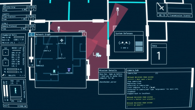 玩家可黑入摄像头、炮塔、敌人甚至飞行中的子弹,改变弹道或控制AI行为,例如慢速爬行、隐身或转移注意力。