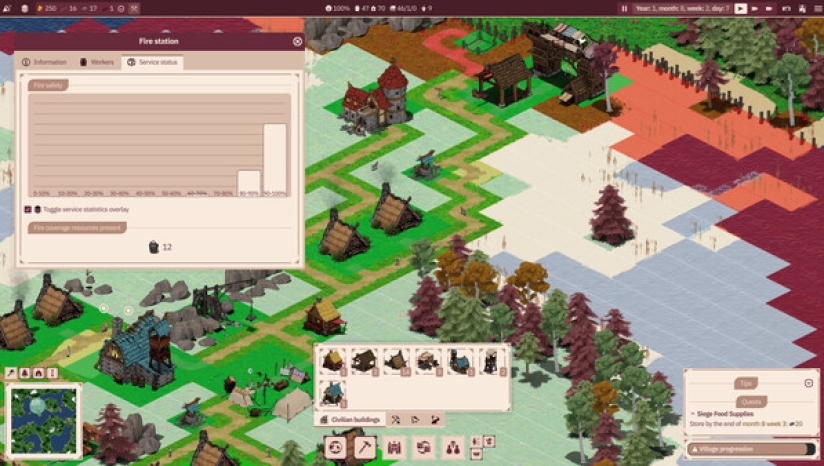 3、随着定居点的发展,你将面临不同的挑战。你需要管理资源的生产和分配,防范和应对火灾、疾病和犯罪等威胁。