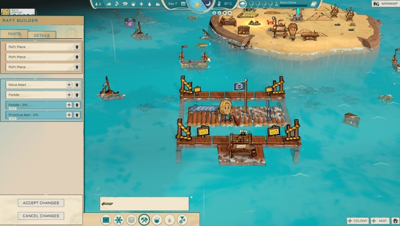 《Oceaneers》是一款以可沉没岛屿为背景的木筏制作生存管理冒险游戏。由Barrel Smash Studios开发制作,未来将上线steam平台。您将控制一群幸存者,通过拾荒、采集和制作,最终建立一个岛屿殖民地!您将建造探险木筏,研究让岛屿保持漂浮的装置,并打造属于您的浮动家园。