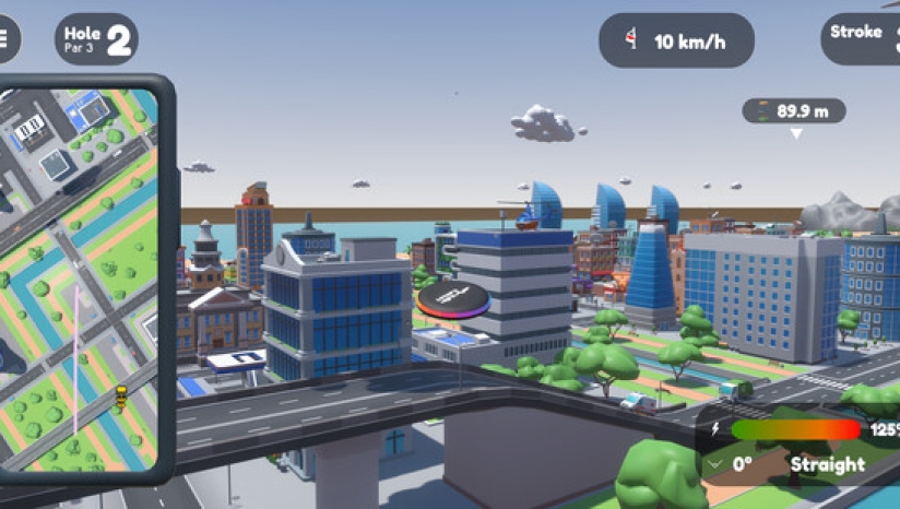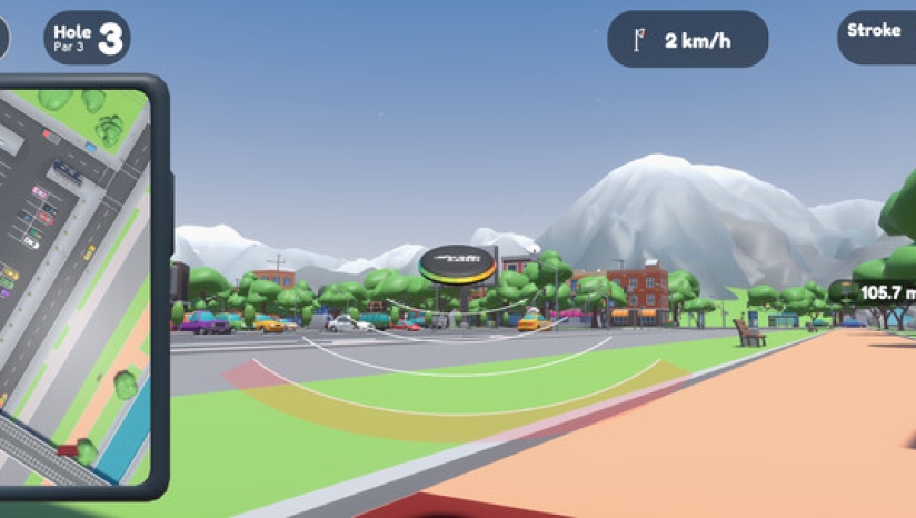 1、街机风格的飞盘高尔夫 设置在熟悉的都市环境中