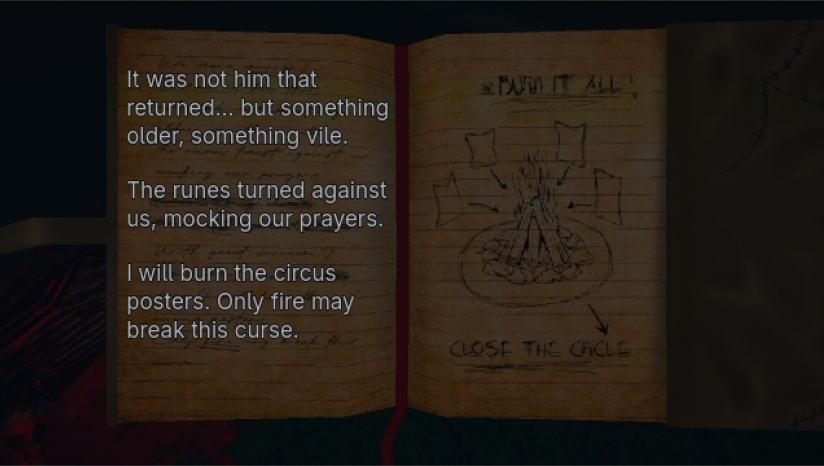 游戏采用2D俯视角美术风格,以暗色调为主强化压抑氛围。马戏团场景充满超现实主义元素:如旋转木马镶嵌眼球、帐篷布料呈现血肉纹理,凸显噩梦的扭曲感。角色设计突出反差——迈克的渺小身形与庞大狰狞的小丑形成视觉压迫,而小丑的夸张笑脸与血迹斑斑的服饰进一步深化恐怖感。优化方面,配置需求极低(最低需GT 9800显卡),适合多数设备运行。