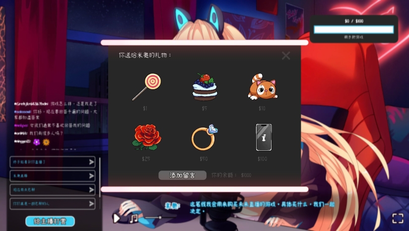 打赏金额直接解锁特殊对话选项,揭露"金钱换情感"的荒诞本质。