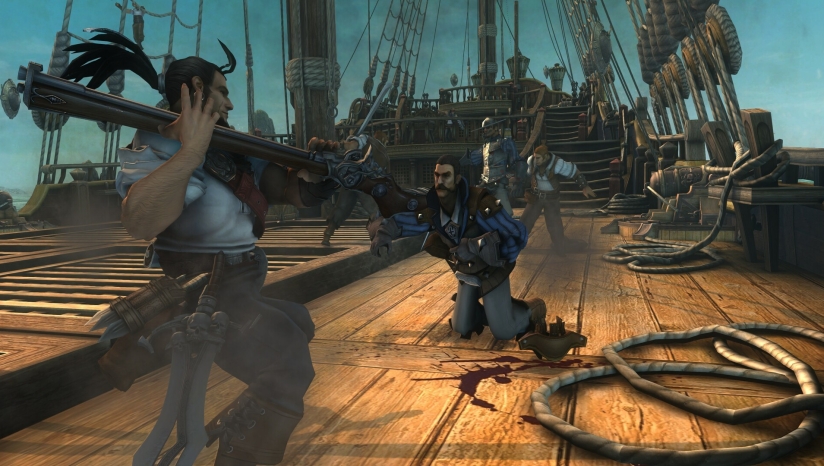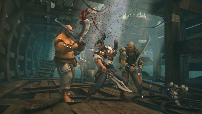 陆战:快节奏冷兵器格斗,使用弯刀、火枪等武器连击,可投掷酒瓶、绳索等场景道具,施展终结技。