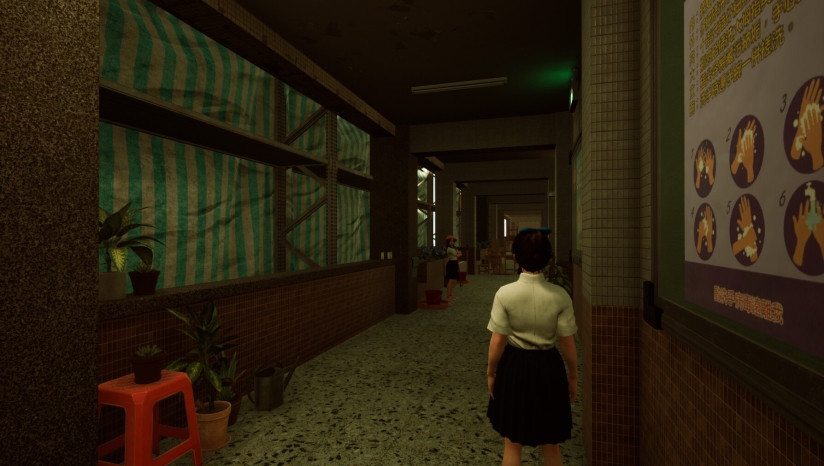 采用第一人称视角,核心玩法围绕“探索-解谜-躲藏”展开。玩家需在豪宅与莲华宫等场景中搜寻线索,破解与剧情深度绑定的谜题,如“双修室”中的邪教仪式关联谜题。遭遇怨灵时需通过潜行规避或紧急跑酷逃生,无战斗系统的设计强化了生存压迫感,全程体验约5小时。