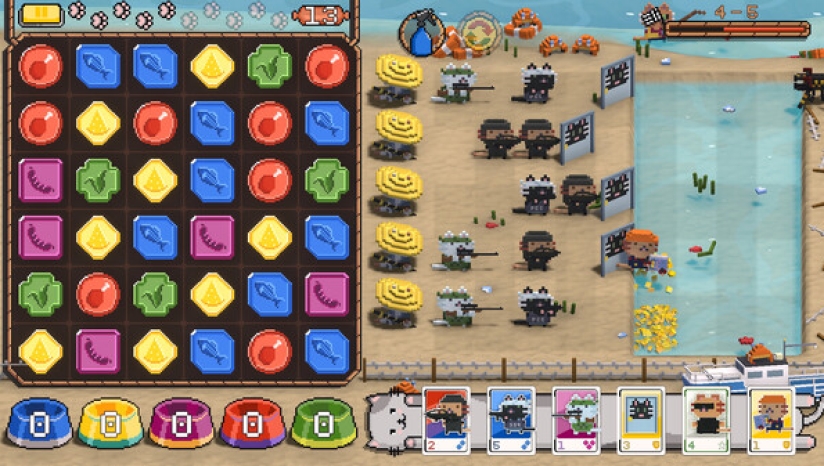 简中《喵喵大战死剩种》是一款由Prikol Team开发制作ESDigital Games发行的策略游戏。《喵喵大战死剩种》是一款融合了三消元素的即时战略塔防游戏。作为铲屎官的你,要同时操控两个游戏区域,收集各种各样的猫粮,召集喵喵来为你战斗。强大的喵星人有着各种攻击方式,合理放置你的猫塔,组合、升级、击退源源不断的凶残敌人,感受战斗的精喵绝伦!