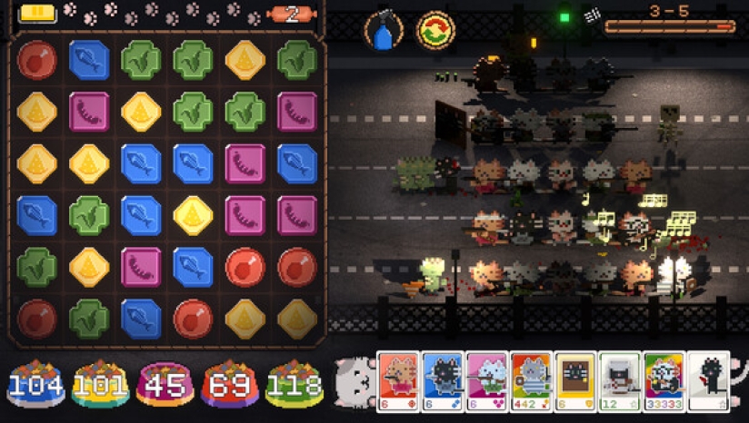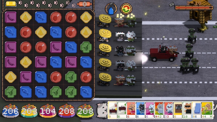 三消大混战: 这里不只有塔防,还有让人停不下来的三消玩法!战斗的同时你需要在资源区域的合成猫粮,召唤猫塔。除此之外,让三只猫猫站到一排,还能见证超级战喵的诞生!发动更为强大的攻击。《喵喵大战死剩种》吸取了《植物大战僵尸》与《Tower Swap》的精华,同时加入了令人无法自拔的三消机制。
