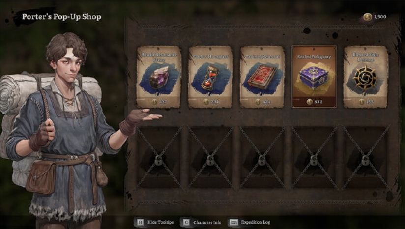 招募9名独特角色,通过永久性升级(武器熟练度、遗物装备)强化队伍,同时谨慎管理关键道具。