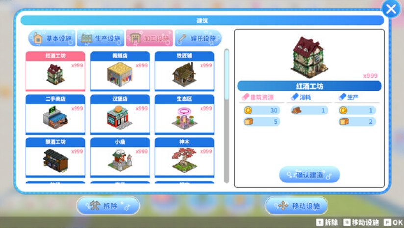 三、加工设施——粉丝来访时可将一种资源转换为另一种。