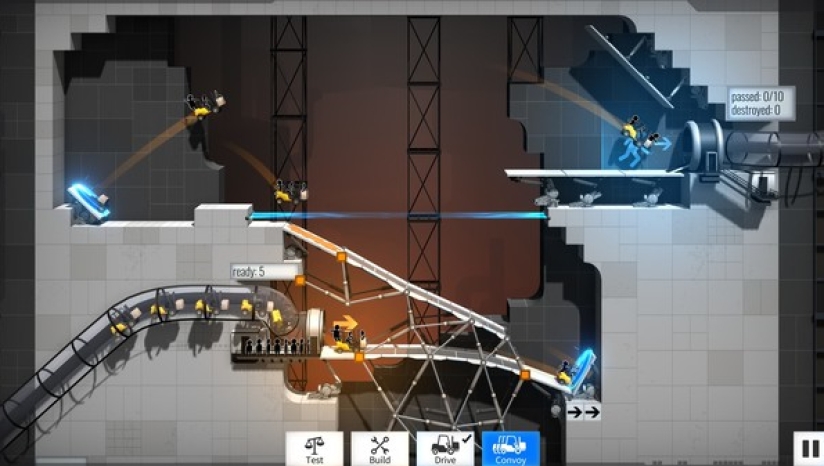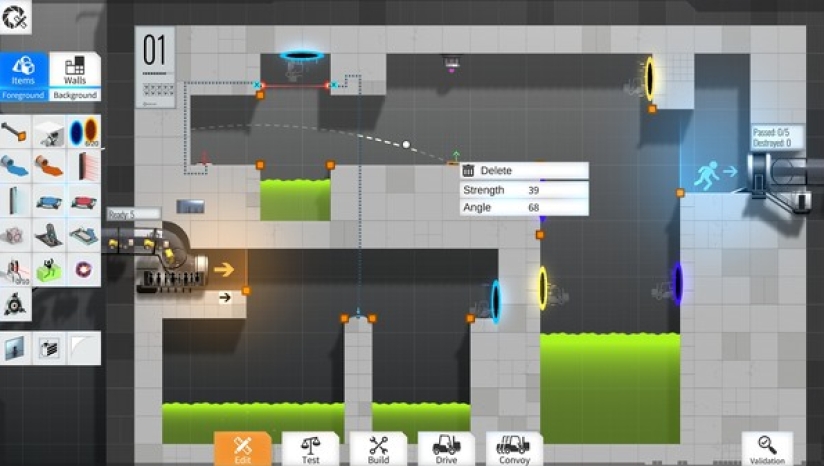 作为光圈科技测试实验室的新员工,你的工作是在60个测试室中建造桥梁、斜坡、滑梯和其他建筑,并让叉车安全通过终点线。