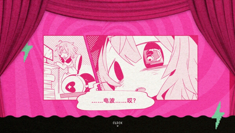 《晕晕电波症候群》(原名:Dizzying Wave Syndrome)聚焦逃避现实的少女「小Q」。因现实压力精神混沌的她沉迷电波歌曲与虚拟角色「晕晕」(天使外表的恶魔)。吸食电波歌后,小Q在网络发布癫狂的二次创作「怪文书」,其强烈脑电波意外扭曲现实。游戏通过多结局探讨「虚拟依存」「网络集体癫狂」主题,贯穿「现实与幻象边界崩塌」的暗黑命题。