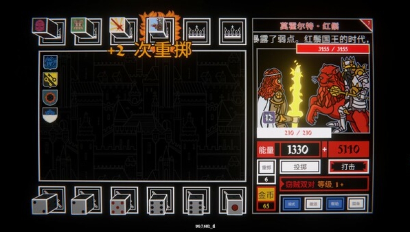 骰面组合触发"石中剑"特效:三个5点激活"王者之怒"(3倍伤害),但连续3轮未触发会降低亚瑟王忠诚度。