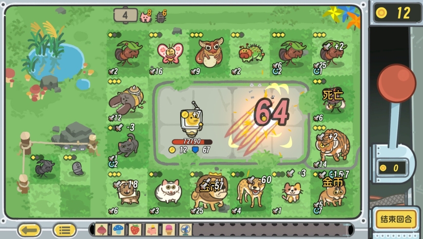 游戏核心玩法融合了轮盘机与自走棋元素,玩家需要将代表不同动物的棋子放置在轮盘空位上,然后拉下拉杆开始旋转,被选中的棋子会自动发起攻击。游戏中包含13个种族、100多种动物和90多种贴纸,玩家可以自由搭配构建自己的战斗体系。游戏采用肉鸽玩法,每局体验都不同。鸟类种族攻略展示了玩法深度:例如母鸡产蛋、鸟蛋孵化机制需要玩家平衡旋转次数与孵化周期,搭配鹦鹉、火烈鸟等鸟类核心卡牌形成连锁反应。玩家需要综合考虑种族聚集效应、相邻单位加成等策略要素,不同种族间存在千丝万缕的联系与配合方式。
