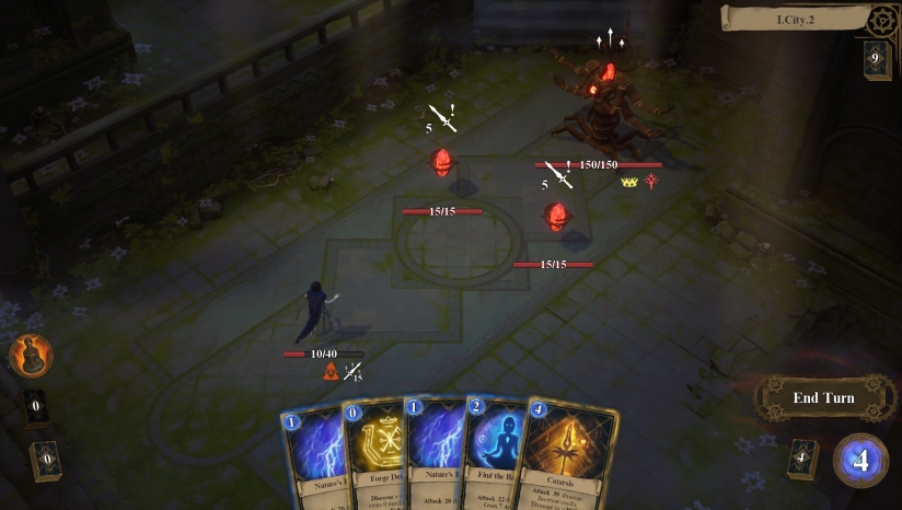 游戏的核心玩法结合了卡牌策略与Roguelike元素。每次冒险开始前,玩家需要从12件远古神器中选择一件,每件神器都会赋予特殊力量并为玩家提供独特的起始卡组,塑造不同的游戏风格。在战斗过程中,玩家需要运用卡牌、神器和技能对抗敌人,特别是需要针对不同魔像的弱点调整策略,例如石像鬼免疫物理伤害但畏惧镜子卡牌,秘银魔像则会定期暴露出核心弱点。游戏还包含环境互动元素,如利用破碎钟楼的坠物打断敌人咏唱,或借助奥术污水潭增强电系卡牌效果。通过收集记忆碎片可以解锁被动技能,但需注意过度修复身体裂缝可能会触发傀儡化结局。