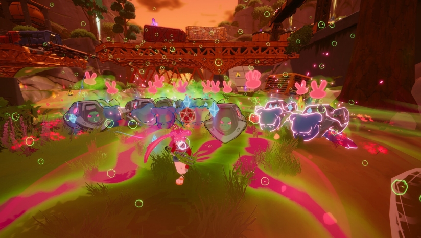 作为一款融合了roguelike元素的合作射击游戏,《原子野餐》支持1至4名玩家在线联机游玩。玩家将进入多样化的竞技场,面对成群的怪物,需要运用武器和技能进行实时战斗。游戏中的每次“野餐”(即每局游戏)都是独特的体验,玩家需要通过击败敌人获取经验值,升级武器和技能,打造最佳装备组合以维持生存。游戏特别强调团队协作,成功往往依赖于队员之间的默契配合与沟通。玩家可以利用名为“冲击装备”(Impulse Gear)的特殊工具在地图上快速移动,达到高处和隐蔽位置,利用地形优势进行战略性游戏。随着游戏进程,玩家将面临大规模的Boss战,这需要团队成员之间的高度协调才能取得胜利。