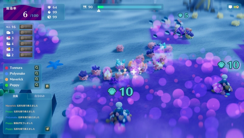 随着除污的进展,珊瑚萌芽,阳光洒落,海洋渐渐恢复缤纷色彩。超过40种“观赏生物”将开始在海中游动——努力清洁海洋,挑战全种类收集!