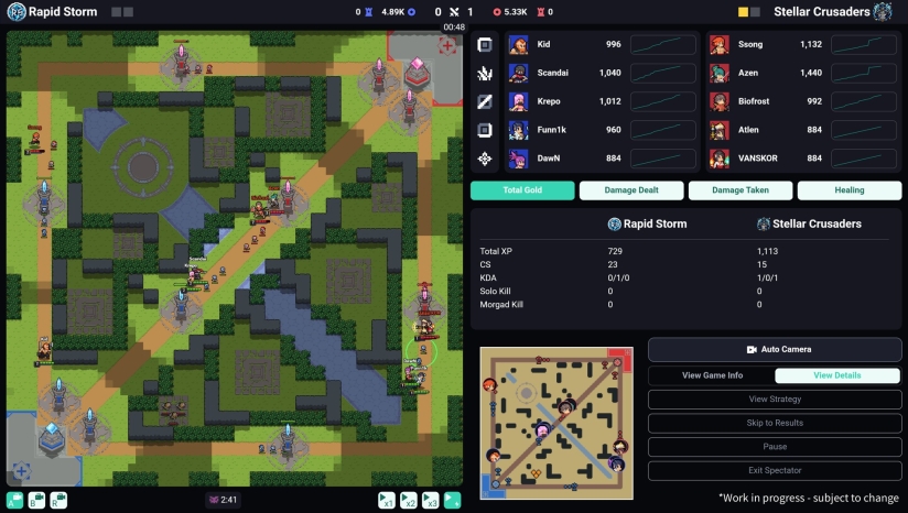 比赛地图和规则已全面更新。现在,在MOBA风格的地图上,合理搭配上单、打野、中单、下路和辅助角色,率先摧毁敌方圣物即可获胜。通过更细化的团队与个人战术,展现您的管理能力。