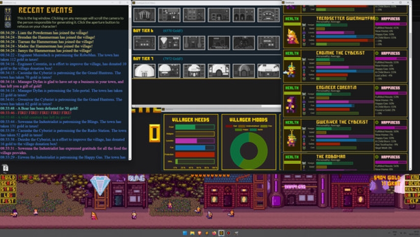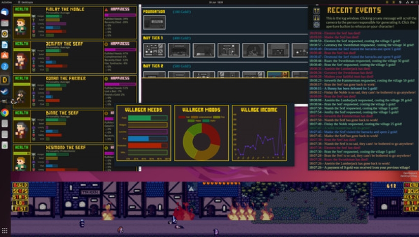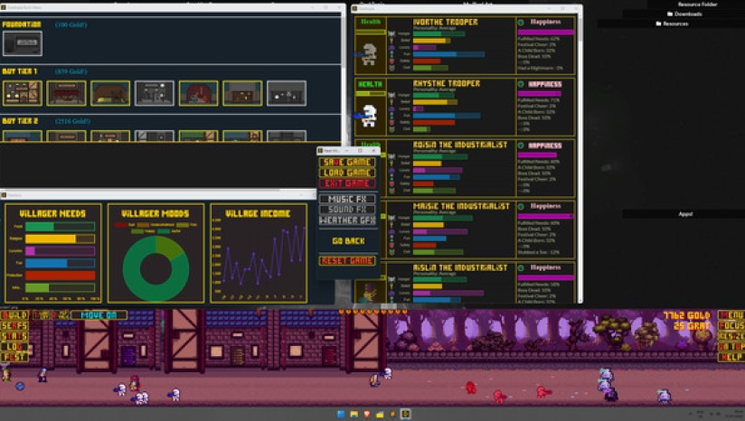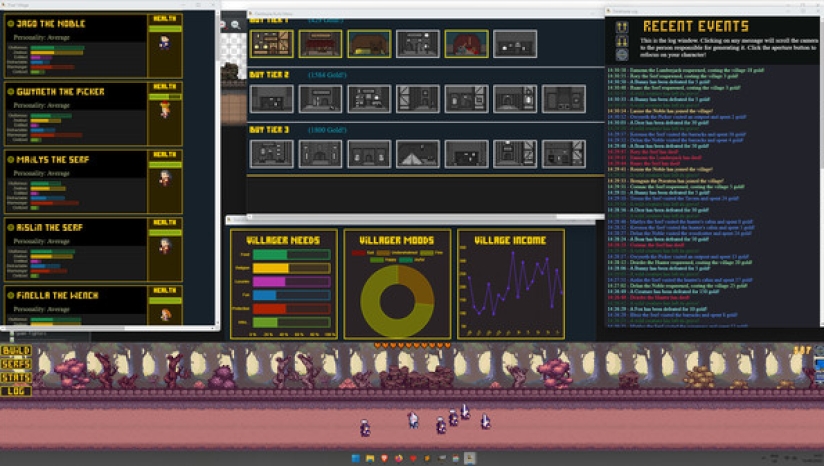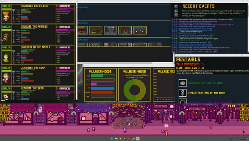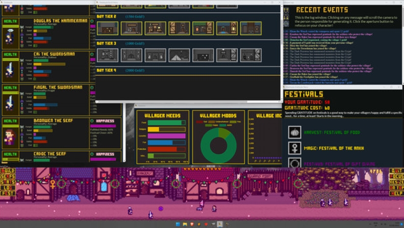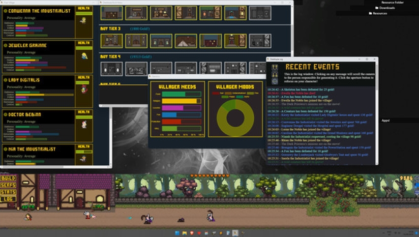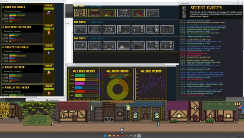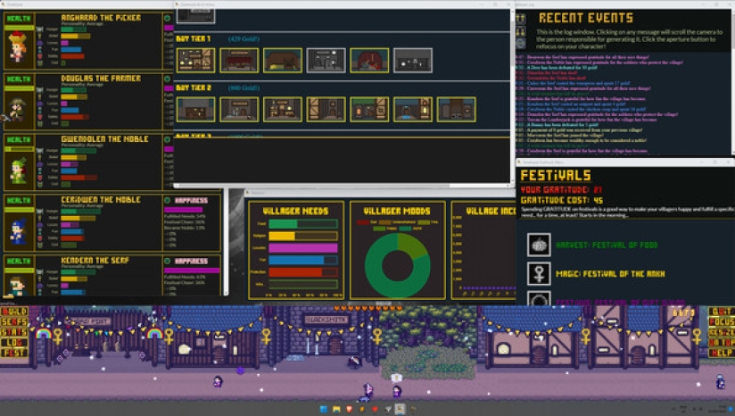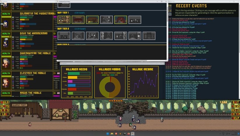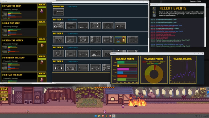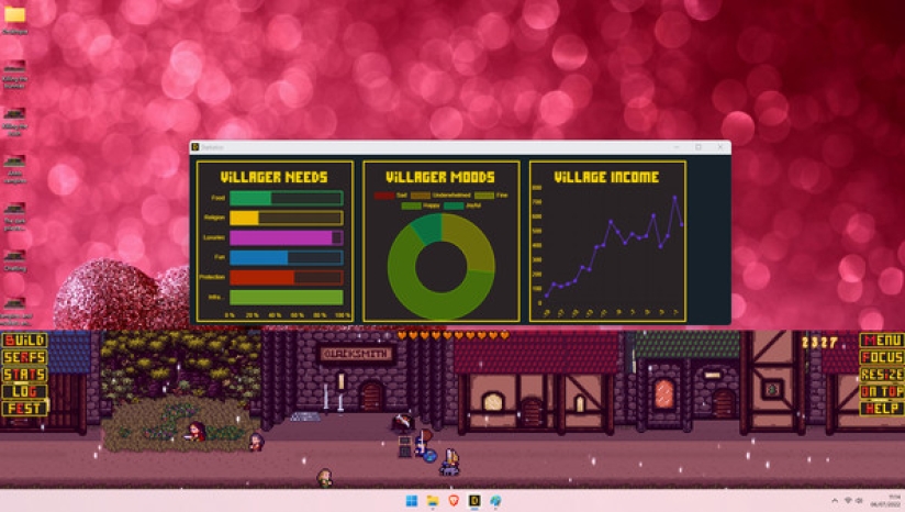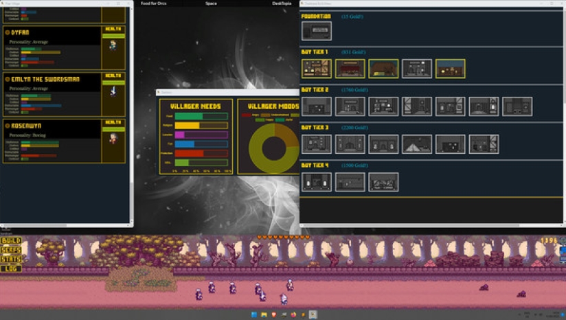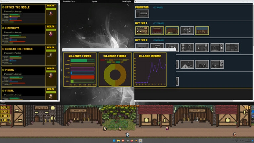 Desktopia的核心是一款城市建设者游戏,它模拟了桌面底部不断发展的中世纪风格的村庄,让你在玩的时候可以工作、观看或浏览其他东西。