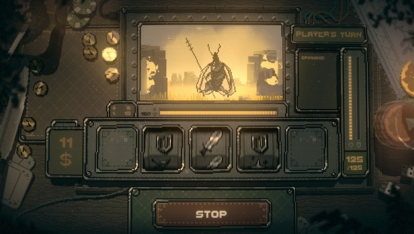 《命运转轮》的核心玩法创新性地将老虎机机制与肉鸽元素深度融合。玩家需要通过旋转老虎机来触发各种效果,包括战斗、属性提升、获取装备等。游戏中,攻击、治疗和法术都由老虎机上的符号决定,连续获得三个相同符号还可触发暴击效果。游戏巧妙融入了策略选择元素——玩家可以手动停止转盘,考验玩家的反应速度与时机把握能力。装备系统会改变轮盘符号出现的概率,例如匕首提升剑符号出现率,法杖增加法术格子,使得游戏在随机性中融入了构筑策略。