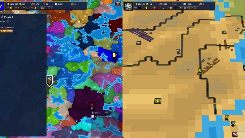 游戏玩法融合了实时战略、城市建设和经济模拟多种元素。玩家需要指挥军队,建设城市,并管理一个动态的经济系统。其中一大玩法亮点是在领土内建立自动化的供应路线,以优化生产效率,确保前线资源充足。资源和增援在游戏中都极为有限,因此,如何平衡生产与消耗,确保最强士兵的生存,有时比单纯赢得一场战斗更为重要。玩家需在程序生成的战役中参与残酷的实时战斗,考验其临场指挥和资源调配能力。