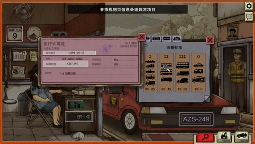 玩家需扮演收费员黛薇,在每个班次中认真检查过往车辆及人员的相关证件,仔细核对身份信息,判断是否允许其通行。这一过程要求高度的注意力和责任感,任何疏忽都可能引发严重后果。