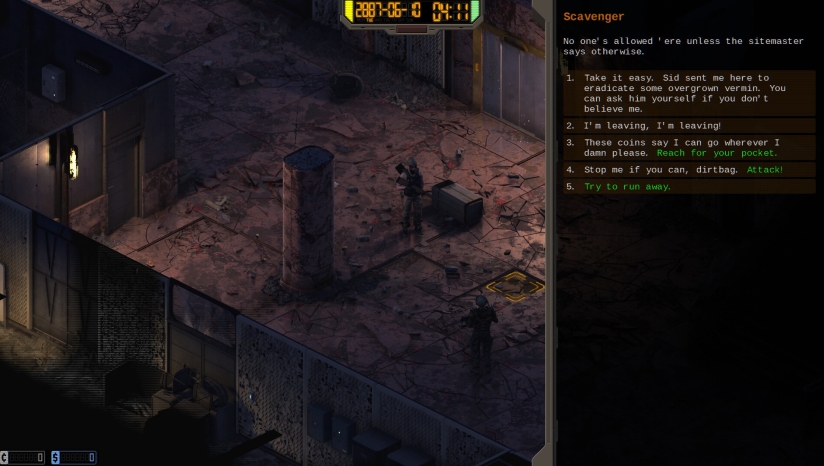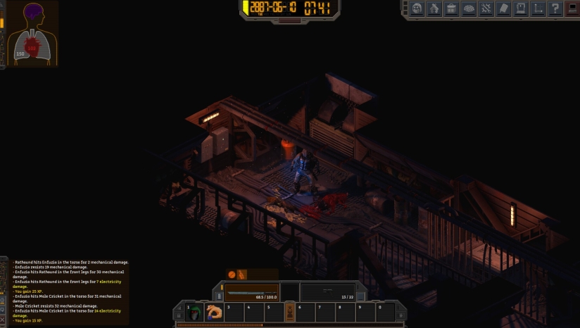 游戏采用等距视角呈现地下世界的幽闭与复杂结构,这种视角选择既保留了经典RPG的韵味,又能清晰展示环境细节与战术布局。游戏画面注重营造末世氛围,地下环境的阴暗、潮湿与杂乱通过细节刻画得以传达,打造出令人信服的末世生存环境。虽然游戏不追求照片级现实主义,但其艺术风格与游戏的整体基调高度契合,等距视角也让玩家能够更好地观察战场情况,制定战术决策。