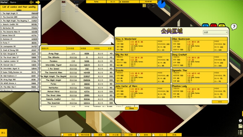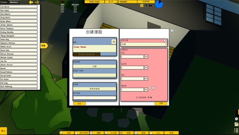 创作你的漫画:用你的漫画征服市场。它们可以基于您自己的想法,或者您可以购买经营权。通过决定它们应该是彩色的还是黑白的、它们有多少广告、它们印刷在什么样的纸张上、它们将运行多长时间以及它们发布的频率来定制它们。有更多的方法来调整它们,但如果你不想那么深入,游戏还允许你把它留给创作者