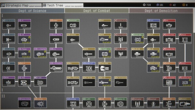科技树分为五个级别,每个级别的破坏力都比上一个更强。每项新研究将为你提供一种独特的方式来摧毁你的敌人和你路上的任何潜在建筑。