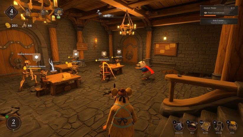 这款游戏的核心是餐厅管理,涉及烹饪、服务、顾客满意度等方方面面。您需要带领老鼠伙伴们完成从准备美酒佳肴到接待客人的各项任务。游戏支持最多4名玩家合作游玩,共同经营这家独特的餐厅,巧妙融合了《胡闹厨房》式的混乱协作与Roguelike玩法的随机性和成长乐趣。每局游戏约20分钟,节奏紧凑。您与伙伴需要共同应对爆满订单、处理突发状况、挥拳整顿不守规矩的客人,甚至参与疯狂食物大战,面对BOSS挑战。